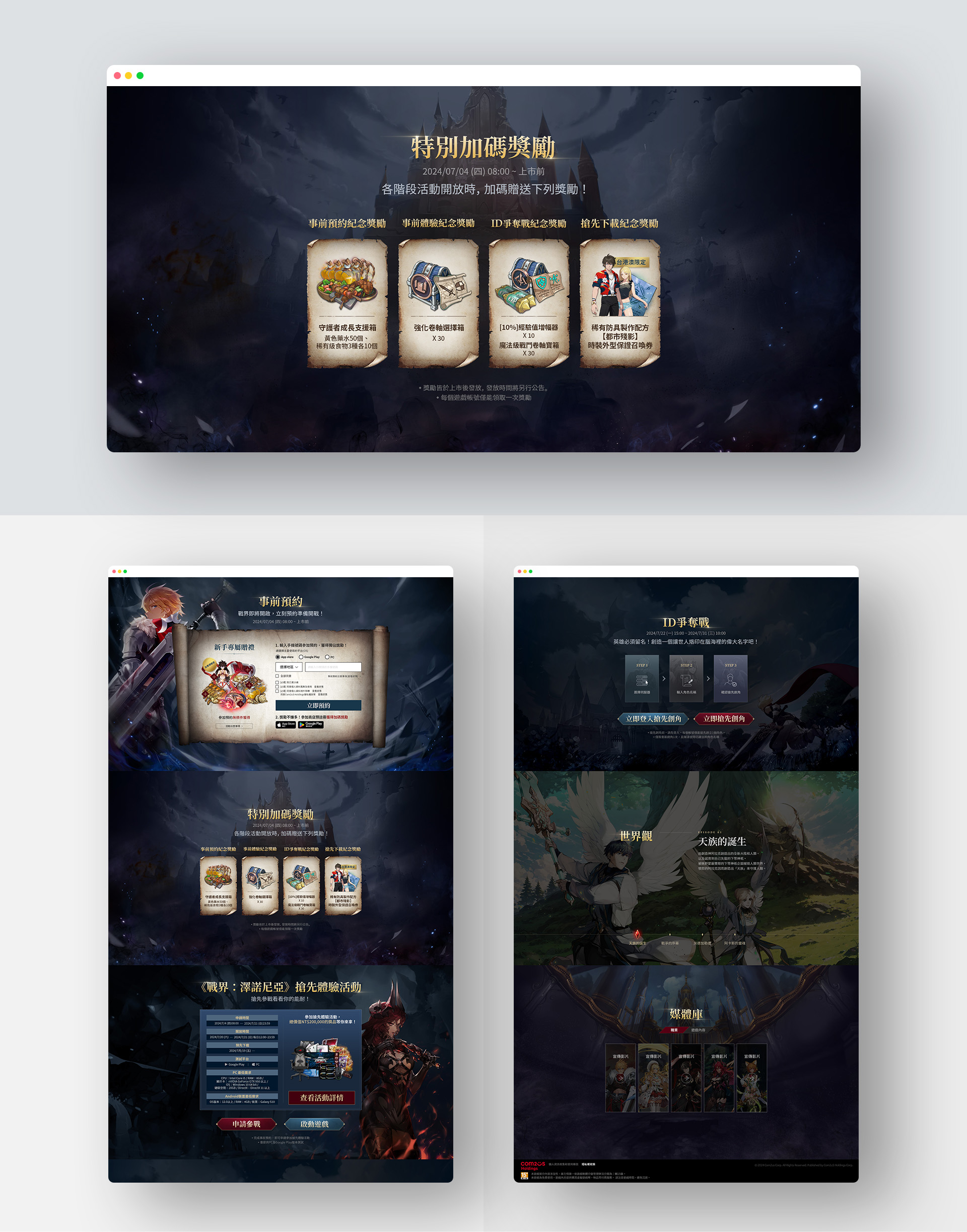 Comtus HoldingsグローバルヒットIPを活用 MMORPG「ジェノニア台湾事前予約」ページの開発。 事前予約とともに、様々なプロモーション、クラス紹介映像、ワールドビューなどを提供し、 ゲームの雰囲気をプレビューするように制作
