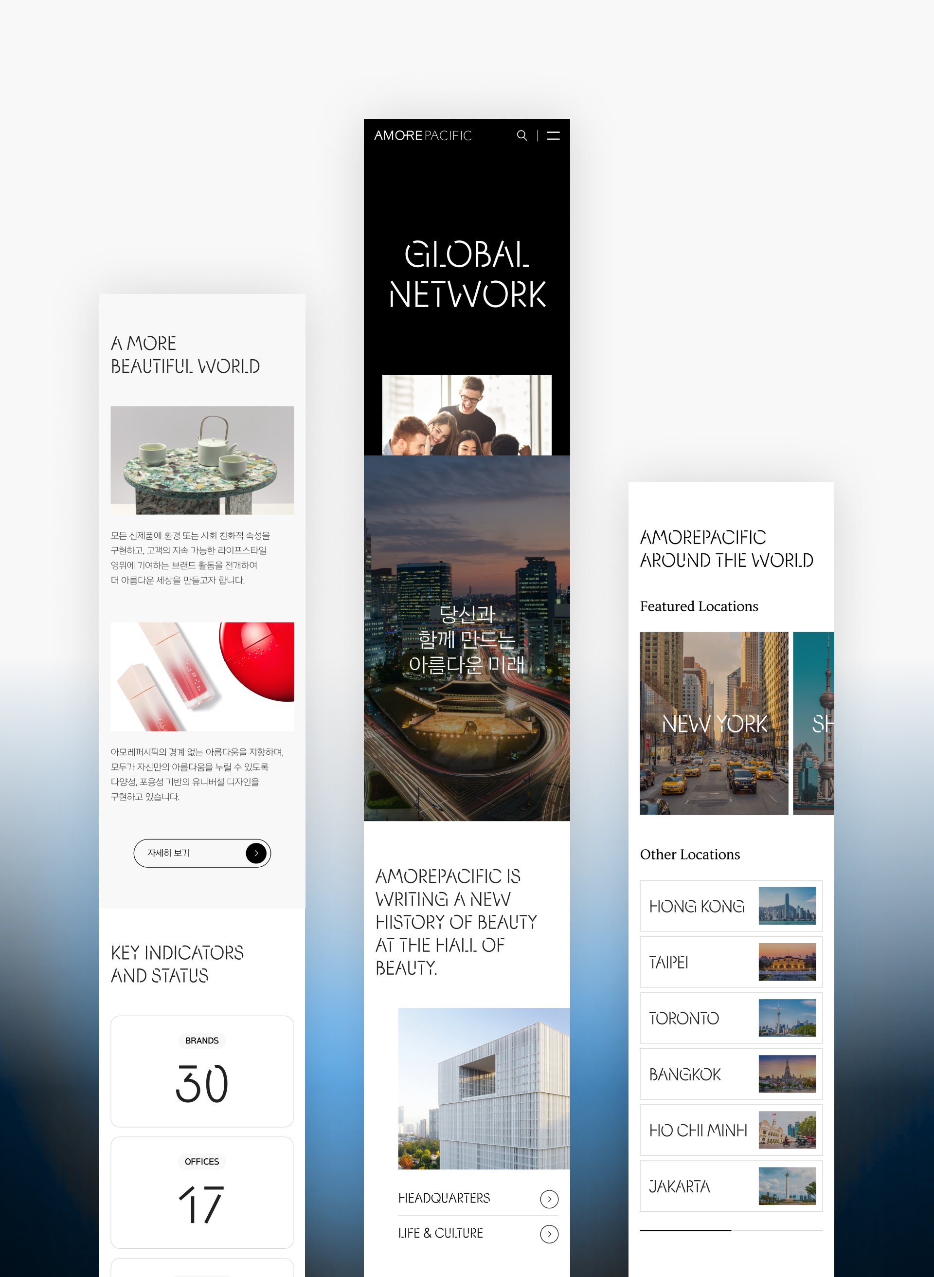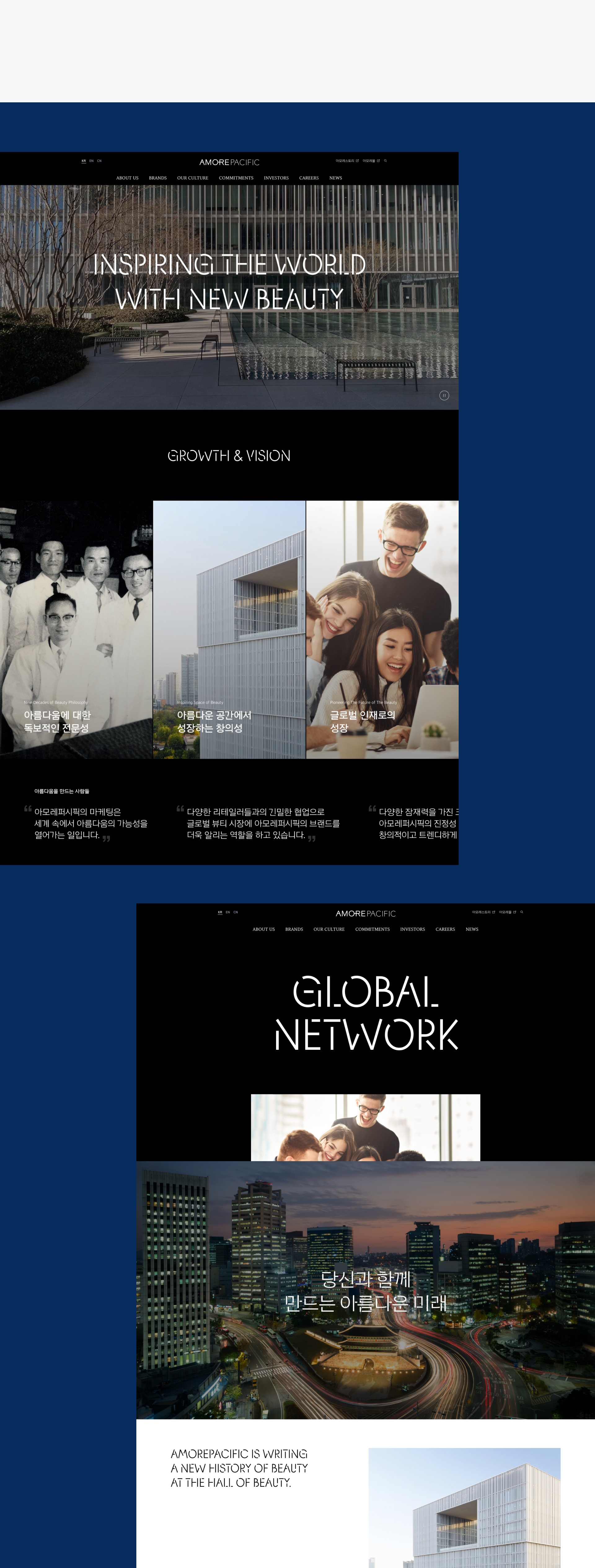 アモーレパシフィック企業サイト Careers リニューアル&映像/コンテンツ制作アモーレパシフィックのブランド哲学を反映したコンテンツ制作を通じて キャリアの職務紹介と採用メッセージの伝達力を強化し、 UI/UX を提供する目的で Careers セクション正面リニューアル